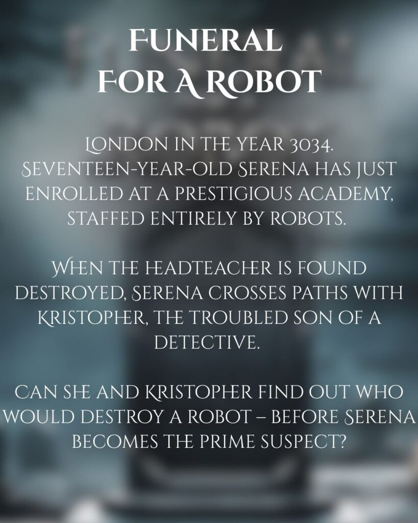 Seventeen-year-old Serena has just enrolled at a prestigious academy, staffed entirely by robots. When the headteacher is found destroyed, Serena crosses paths with Kristopher, the troubled son of a detective. Can she and Kristopher find out who would destroy a robot – before Serena becomes the prime suspect?