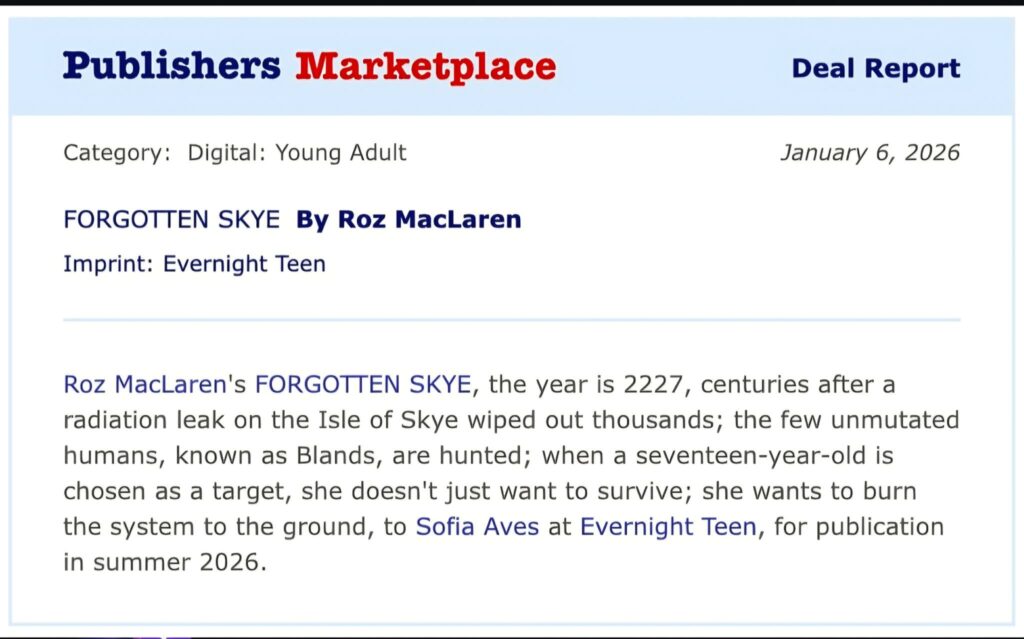 Evernight Teen have contracted Forgotten Skye, which is the first book in my Ruined Skye trilogy.